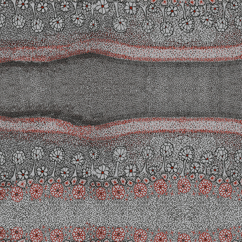Jimmy learned to use Western art materials while in Fremantle Prison and had work exhibited in Major Australian galleries even before his release. Jimmy’s diverse art practice included painting, printmaking, textile design and illustration. Licensing his imagery to Desert Designs, Pike became a fashion sensation not only in Australia but also Japan, America and Europe.