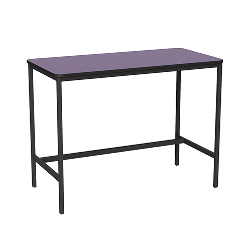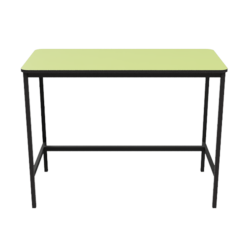 Tables feature a durable welded standing height H-frame with a supportive foot rail and are available at bench heights of 900 and 1050mm. Spacious 1200 x 600 table tops come in 12 colourful options with rounded safety corners and protective ABS edge banding to stay strong in busy school settings. Make it a match with the Active Student Stool or Lobax Stool.