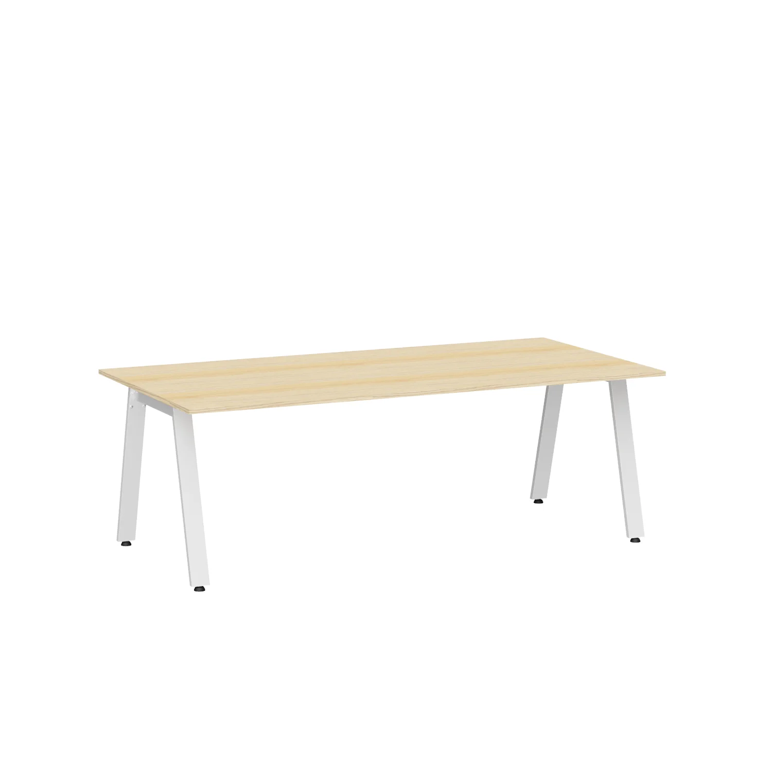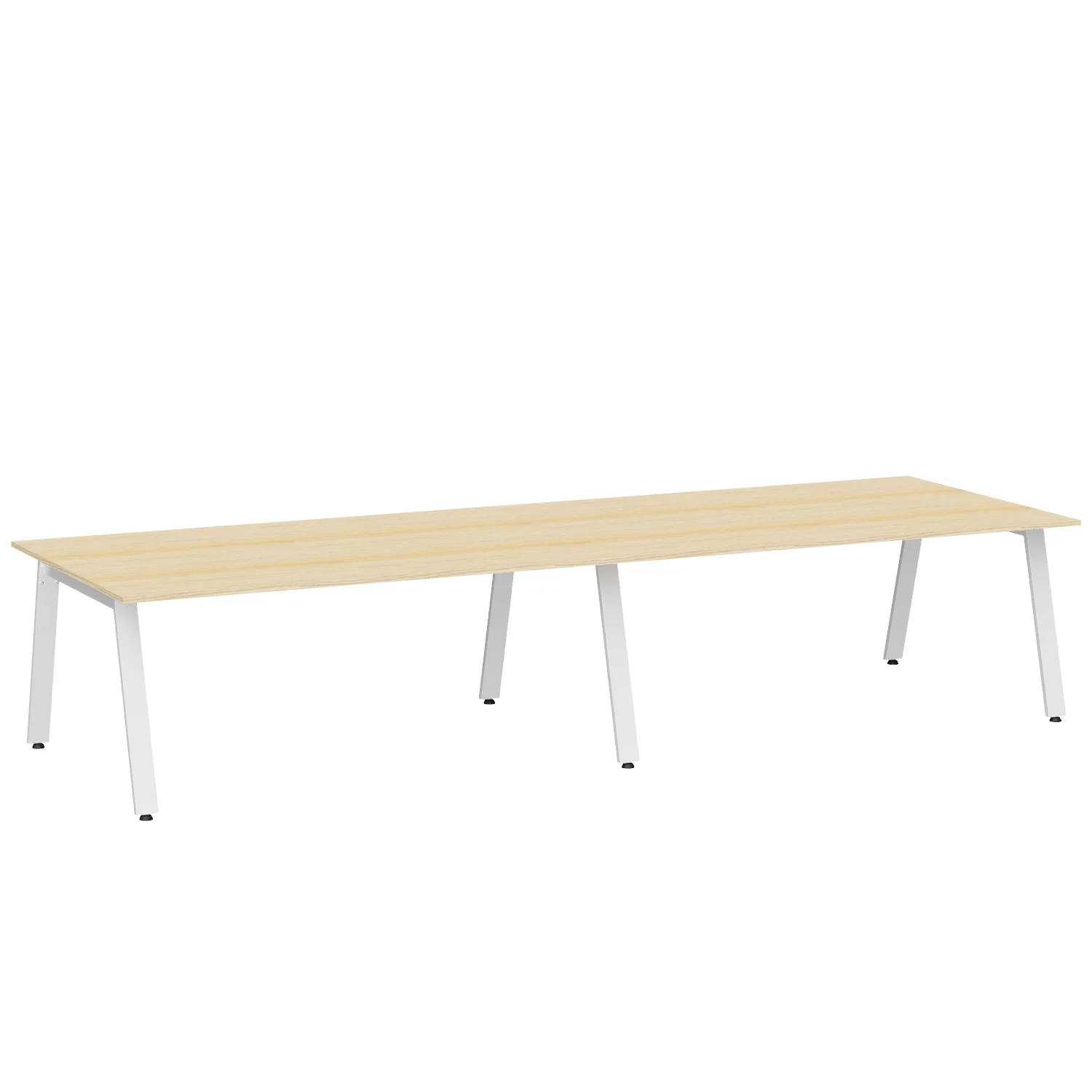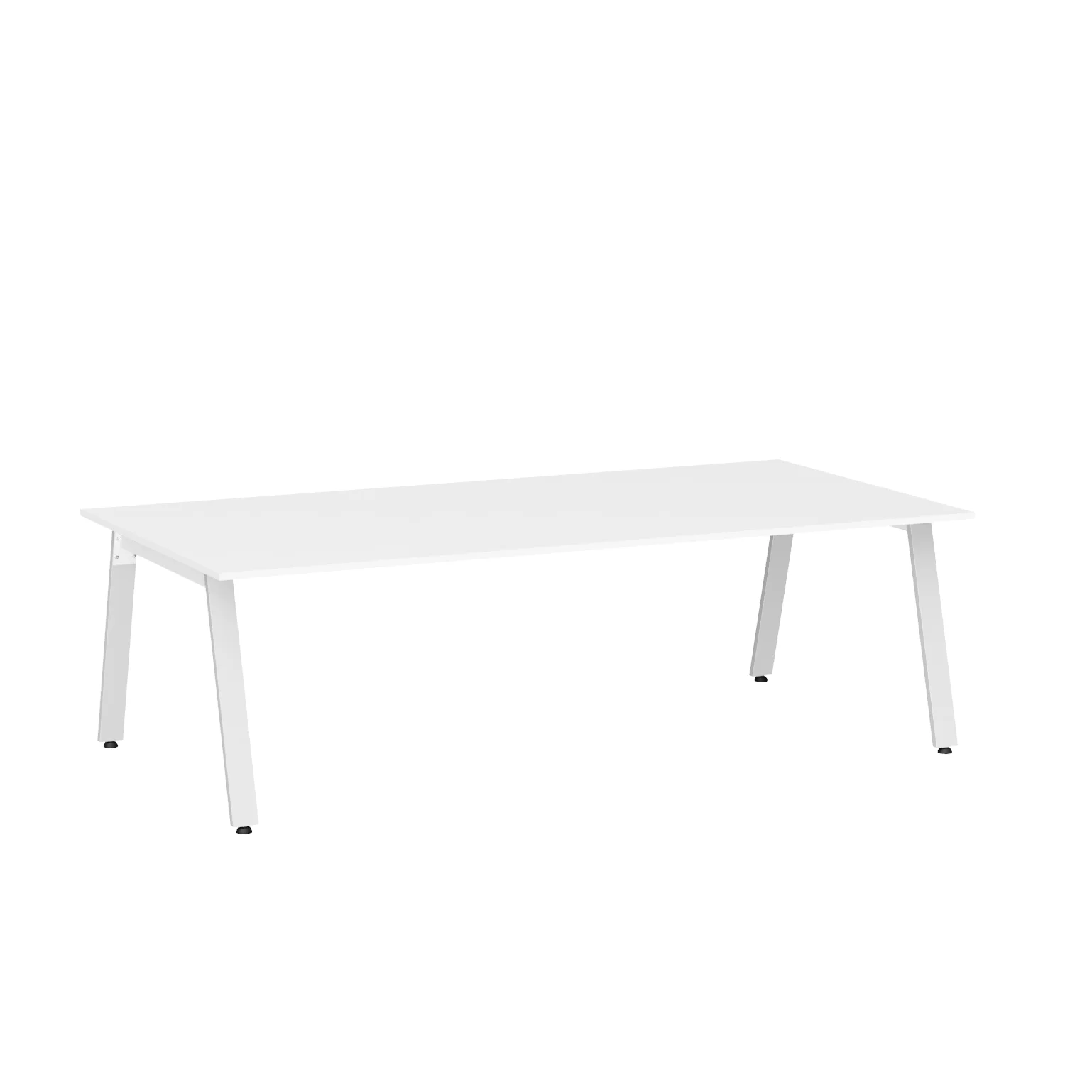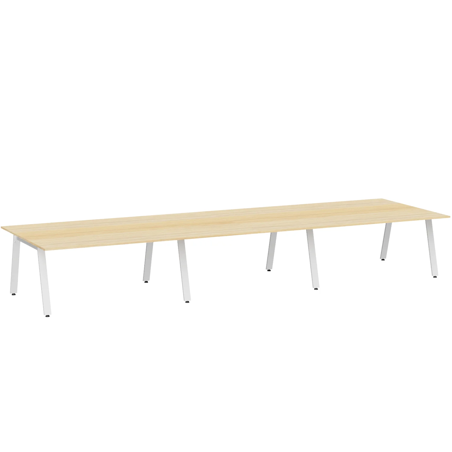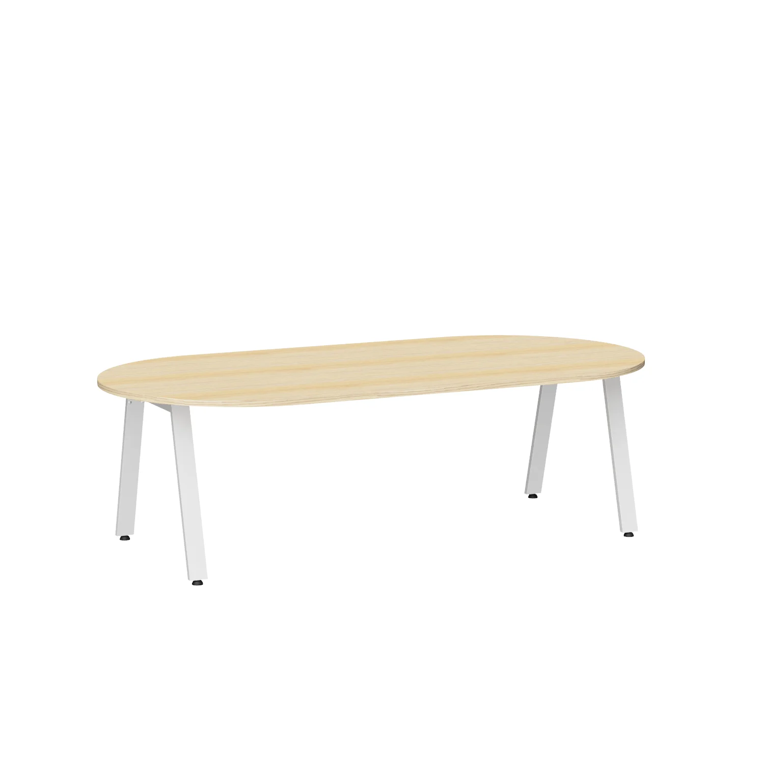 The Byron Boardroom Table is designed for contemporary corporate spaces, featuring an elegant, angled white frame and premium boardroom top.
