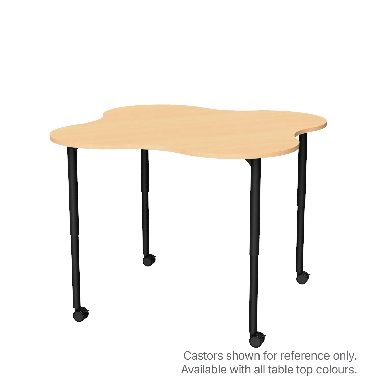 Reach the sky with the Cloud 4 Table. Featuring a fun cumulus cloud top in 13 colours, the Cloud 4 cultivates creativity and imagination in the classroom. Table tops feature protective 2mm ABS edge banding for added durability. Tables are available with fixed height and height adjustable frame options, to suit primary or secondary heights with ease. Cloud tables are a popular option for classrooms, breakout spaces, library areas and STEM learning spaces.