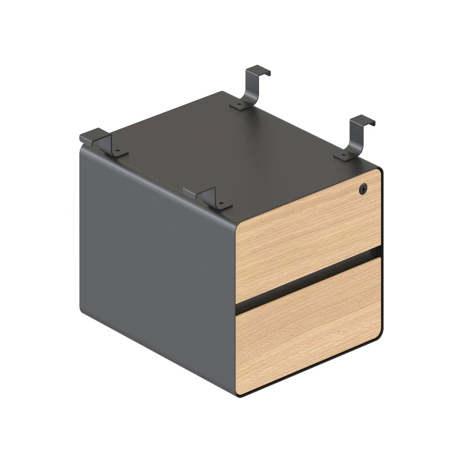 Expand your desk storage with the Deluxe Infinity Hanging Pedestal. The perfect option to expand your desk with a little more storage, while also staying out of the way. The Hanging Pedestal features a durable steel carcass with lockable drawers. Available in 3 colour combinations: Full Black, Full White or Black body with Natural Oak drawers. For a larger drawer option check out the Itsu Mobile Pedestal.