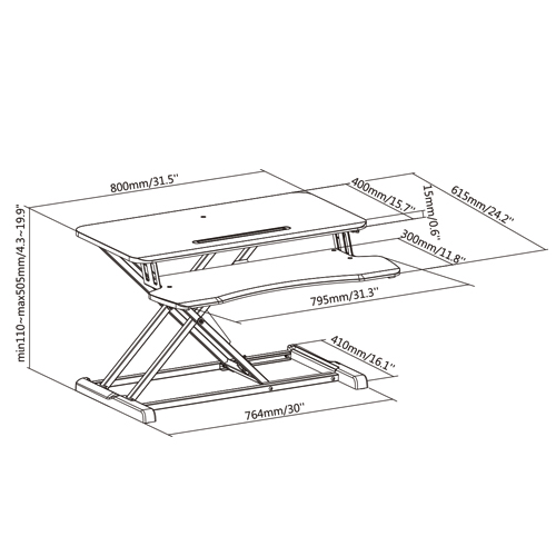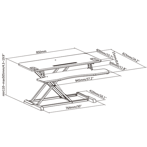 Create an ergonomic work space with height adjustable Desk Risers. We currently have 2 size options available; 800mm and 950mm wide. Both sport a wide height adjustment range from 110mm to 505mm high. Desk Risers are a popular option for home office and classroom applications. Enjoy both sitting and standing functions to increase blood flow and aid concentration. Each Risers comes with a 5 year warranty for added value. For another Riser option, see our Electric Desk Risers.