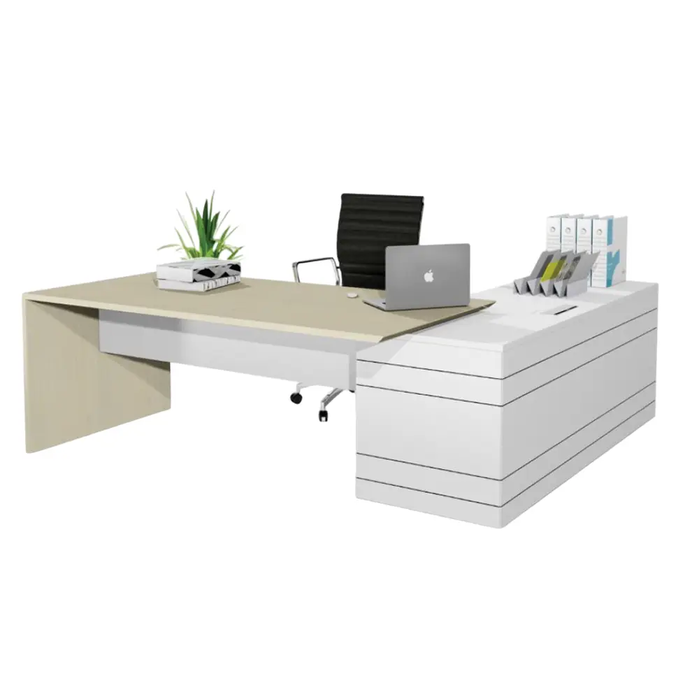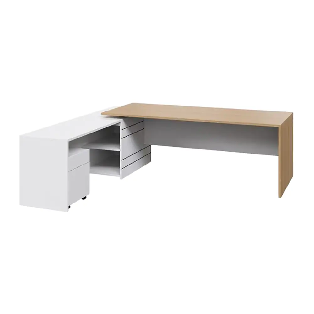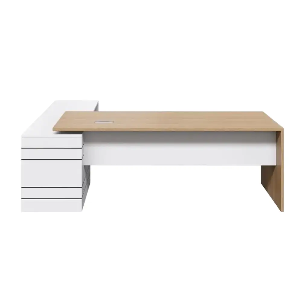 Organise your office with a Geo Slab End Desk with Return. Units feature a generous work surface with a sleek modern design and are available in 2 sizes. The table top features a cable entry for easy electrical access and a mounted modesty panel as standard. Workstations are available in a wide range of finishes, contact our sales team to find the the right one for you!