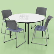 Get creative with the Hercules Round Whiteboard. Whiteboard surfaces allow students to write, draw and share ideas in a collaborative way. For easy clean up, simply wipe down with a microfibre cloth after class. Whiteboard tables are ideal for classrooms, STEM learning areas and collaborative spaces. Tables feature a fully welded frame as standard. Frames are available in any height from 500 to 750mmH. Table tops feature 2mm protective ABS edge banding for added durability. For colour laminate options, shop Hercules Round.