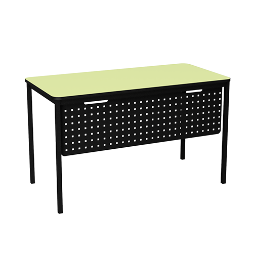 Tables feature a durable, fully welded frame with an integrated modesty panel, made to order in various heights. Spacious 1200 x 600 table tops come in 12 colourful options with rounded safety corners and protective ABS edge banding to stay strong in busy school settings. For a fantastic teacher set-up, pair with a Sprinta Chair or Active Typist.