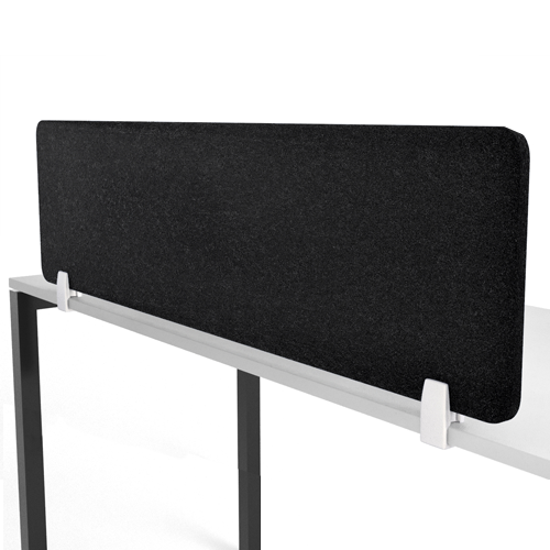 Add privacy to tables and desking with a Hush Desk Dividers. Hush is a lightweight and semi-rigid panel with excellent sound absorbing properties. Designed with solid colour throughout, it can be cut to a variety of sizes to suit any screen or panel application. Panels contain a minimum of 60% post-consumer recycled material (PET bottle-flake). Hush is a safe, non-toxic, non-allergenic and non-irritant material, making it a popular choice for classrooms and office spaces alike. Panels are secured to table and desking using fixing brackets. Brackets are available in white, black or silver.