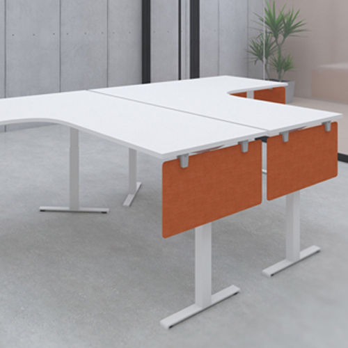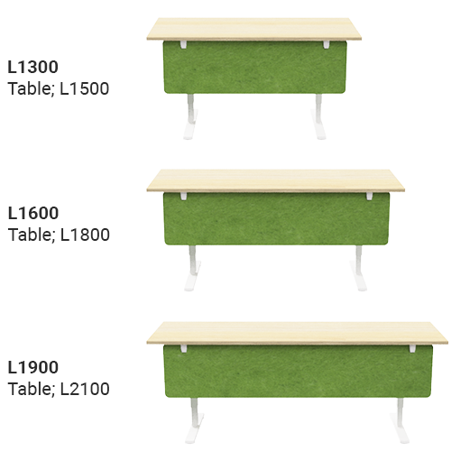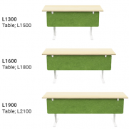 Add privacy to tables and desking with a Hush Modesty Panel. Hush is a lightweight and semi-rigid panel with excellent sound absorbing properties. Designed with solid colour throughout, it can be cut to a variety of sizes to suit any screen or panel application. Panels contain a minimum of 60% post-consumer recycled material (PET bottle-flake). Hush is a safe, non-toxic, non-allergenic and non-irritant material, making it a popular choice for classrooms and office spaces alike. Panels are secured to table and desking using fixing brackets. Brackets are available in white, black or silver.