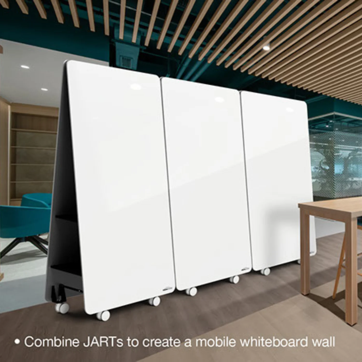 The Jart Mobile A-Frame Whiteboard delivers a double-sided magnetic surface, concealed storage, and low-profile mobility—ideal for modern offices, collaboration zones or education. Minimalist in design, practical in execution.