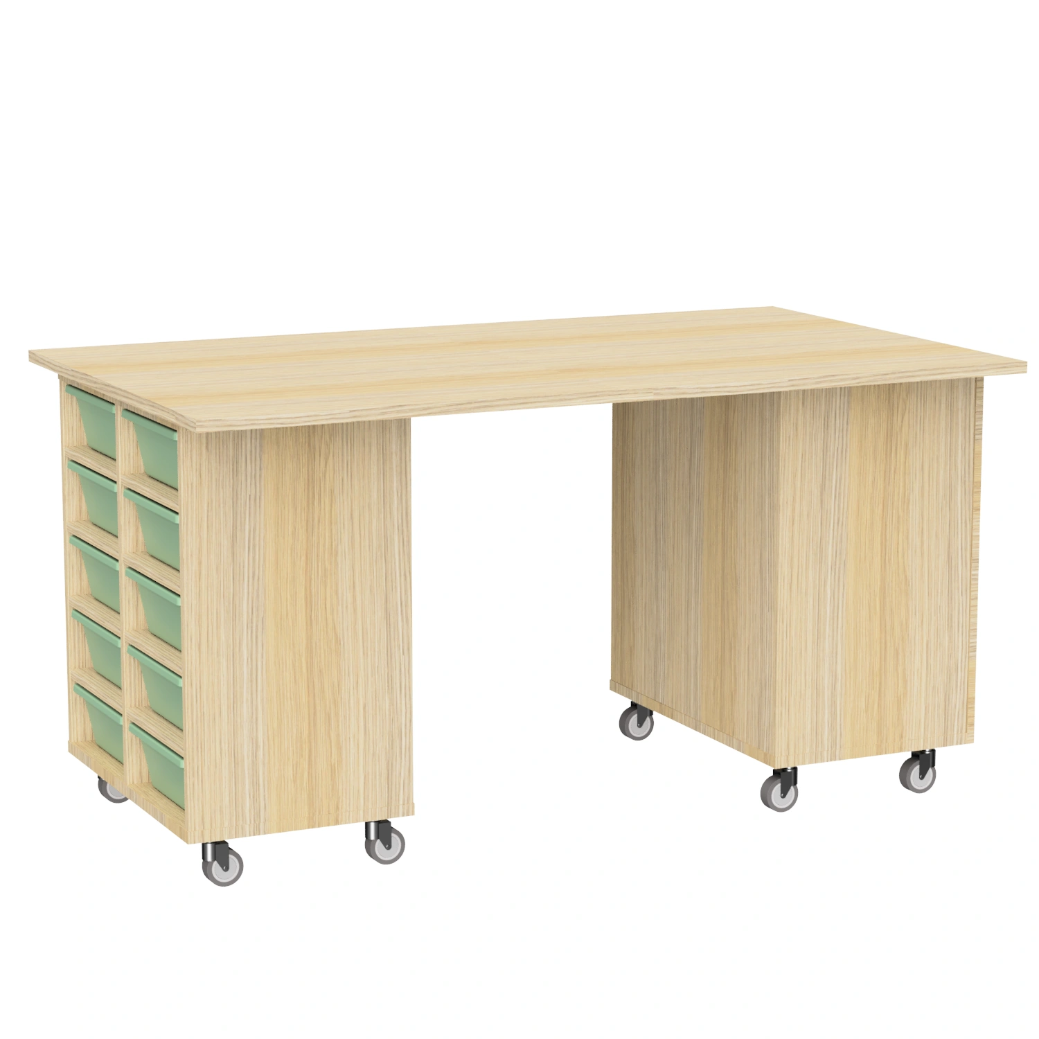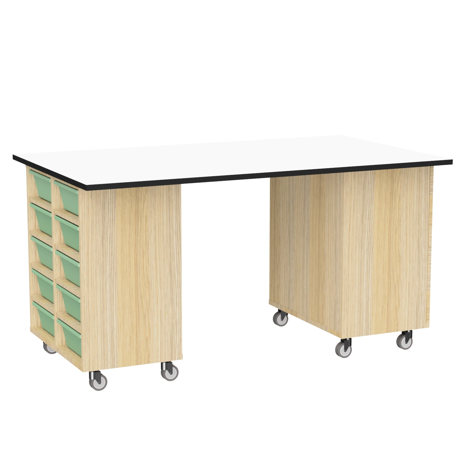 Keep classrooms organised with the Logix STEM 1800. The Logix STEM 1800 is available in 3 configurations; 2 tote units each featuring 10 tote box compartments, 2 cabinet units with movable shelves or one of each unit type for a mix of functionality. Featuring heavy duty castors, units are easy to move on both carpet and floorboards. Made from MDF board, trolleys are suitable for high use learning environments.  The Logix STEM 1800 is available in 2 body colours (Riverstone or Natural Oak) with matching top or a Whiteboard Top. SFX Tote Boxes are included with the tote variations for added storage and functionality. Tote boxes provide quick access to high use items such as text books, tablets and writing utensils.  As a result, students can work more effectively, saving time and space. If you want a smaller option see our Logix STEM 1200.