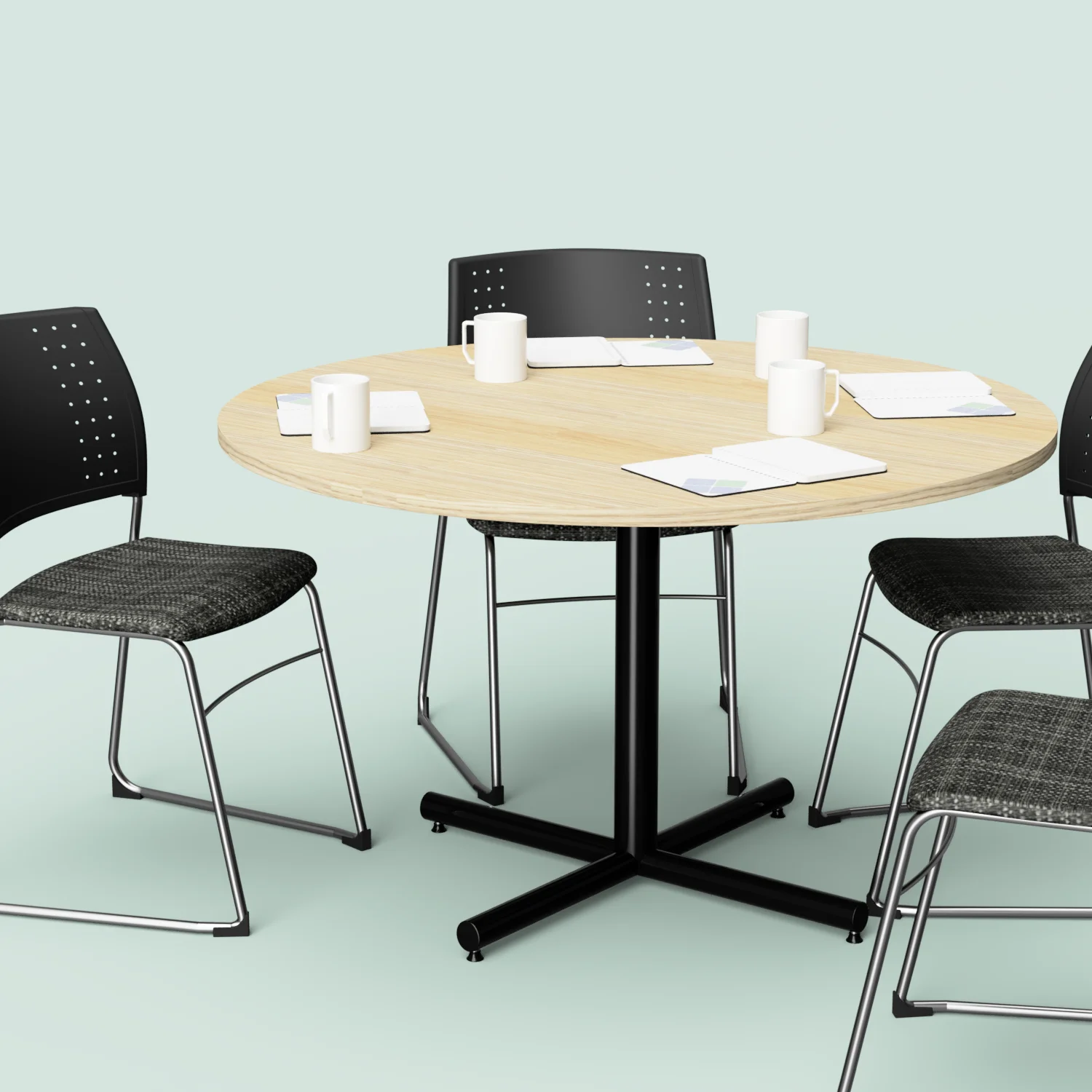 Optix Round Tables make a great addition to school and office fit outs. Due to its minimalist design, tables work seamlessly with existing furniture to create a modern look. Optix Tables are a versatile choice, providing both style and functionality. As a result, the Optix is ideal for break out spaces, teacher lounges and meeting areas. Optix Tables come with a 25mm table top and Black powder coat frame as standard. Custom colours and sizes are also available on request. Furthermore, Optix Tables also come with a 7 year warranty for added peace of mind. Complete your order by complimenting with Active Sled Chairs.