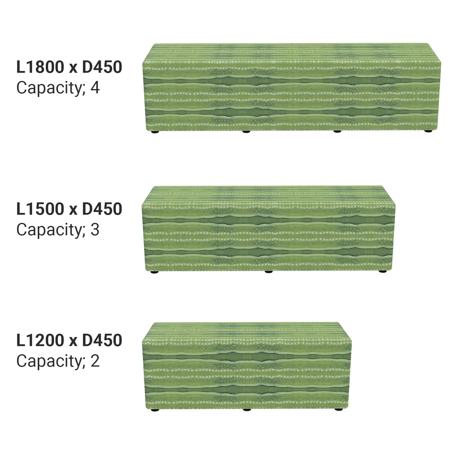 - Available in 3 standard sizes; L1200, L1500 and L1800