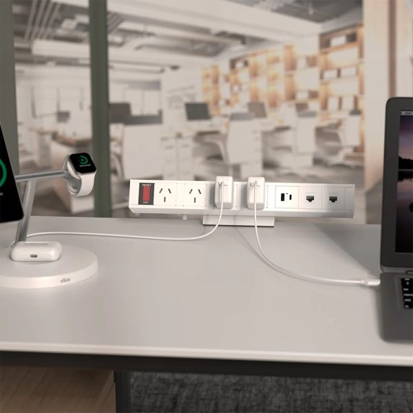 The Power Board Desk Clamp provides easy access to all your power and data needs. Power Boards are mounted to flat worksurfaces and secured with an underside clamp. Power Boards are C-Tick certified, which signifies compliance with the Electromagnetic Compatibility standards. Power Boards features 4 x GPO outlets, 2 x USB ports and 2 x data ports. Boards do not require any technical setup, simply connect your network cable (Cat 6 Cable) and use a short data cable to connect the power board to your laptop or computer. As a result, boards are easy to move and setup. For added value, Power Boards also come with a 10 year warranty.