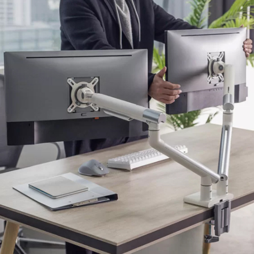 - Dual monitor arm in white