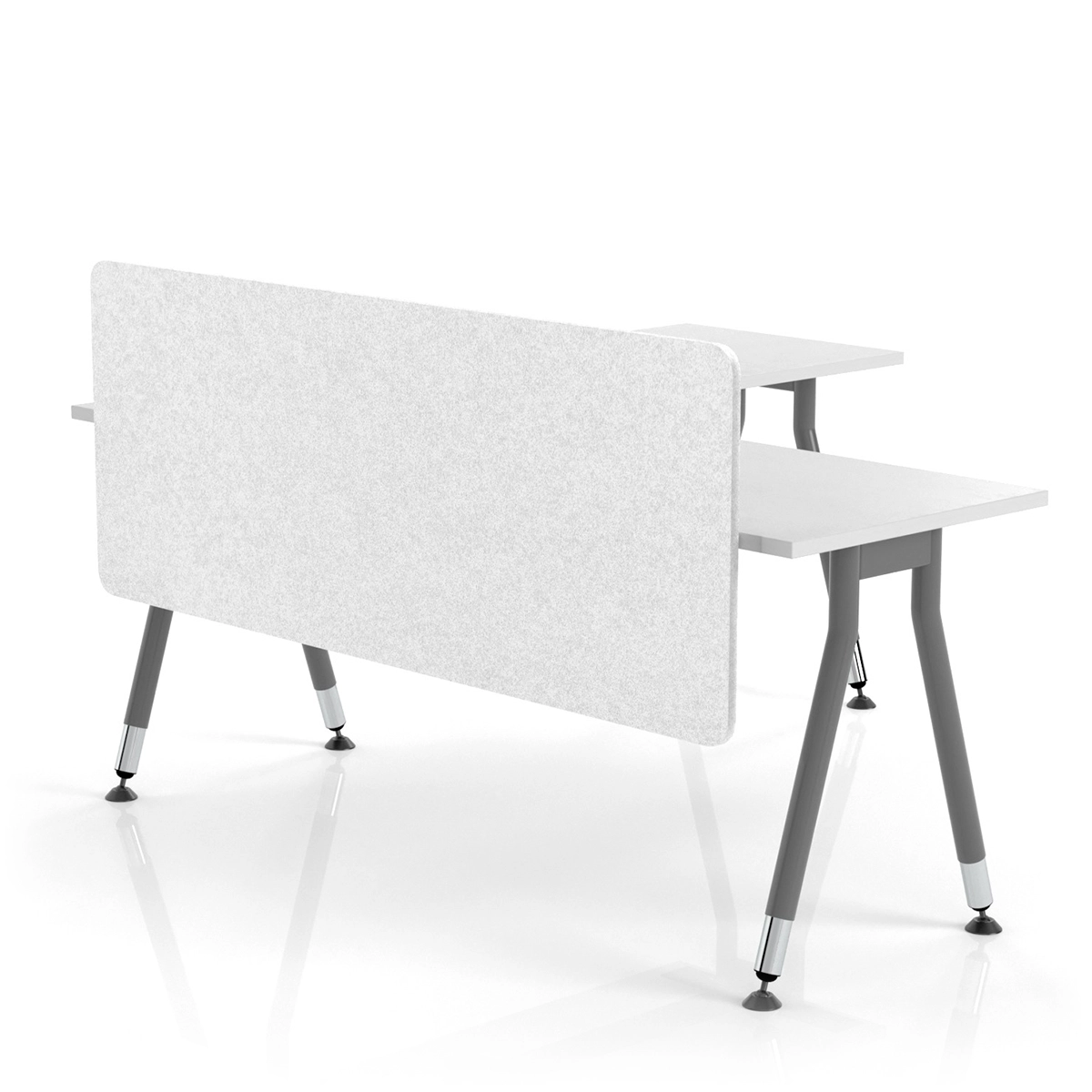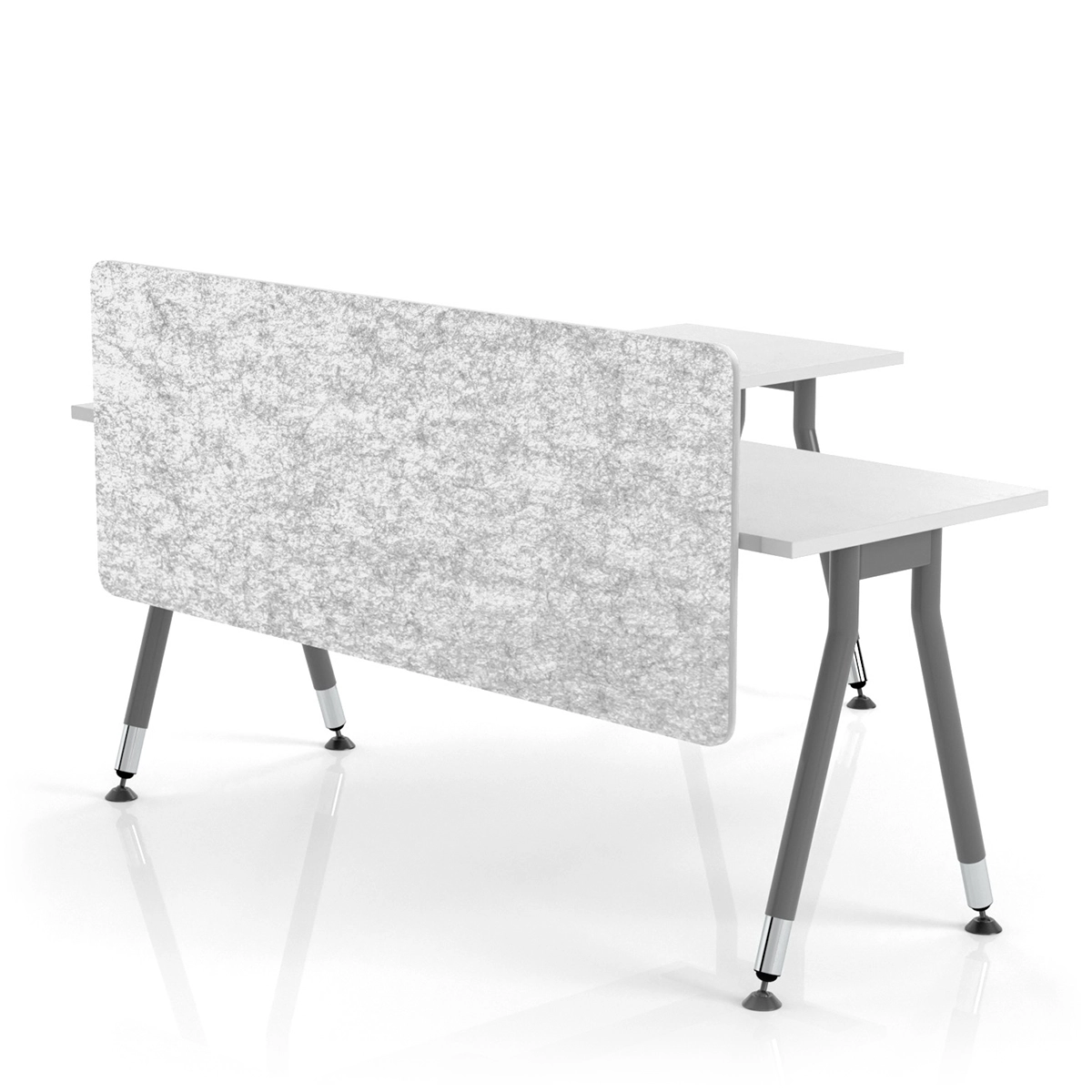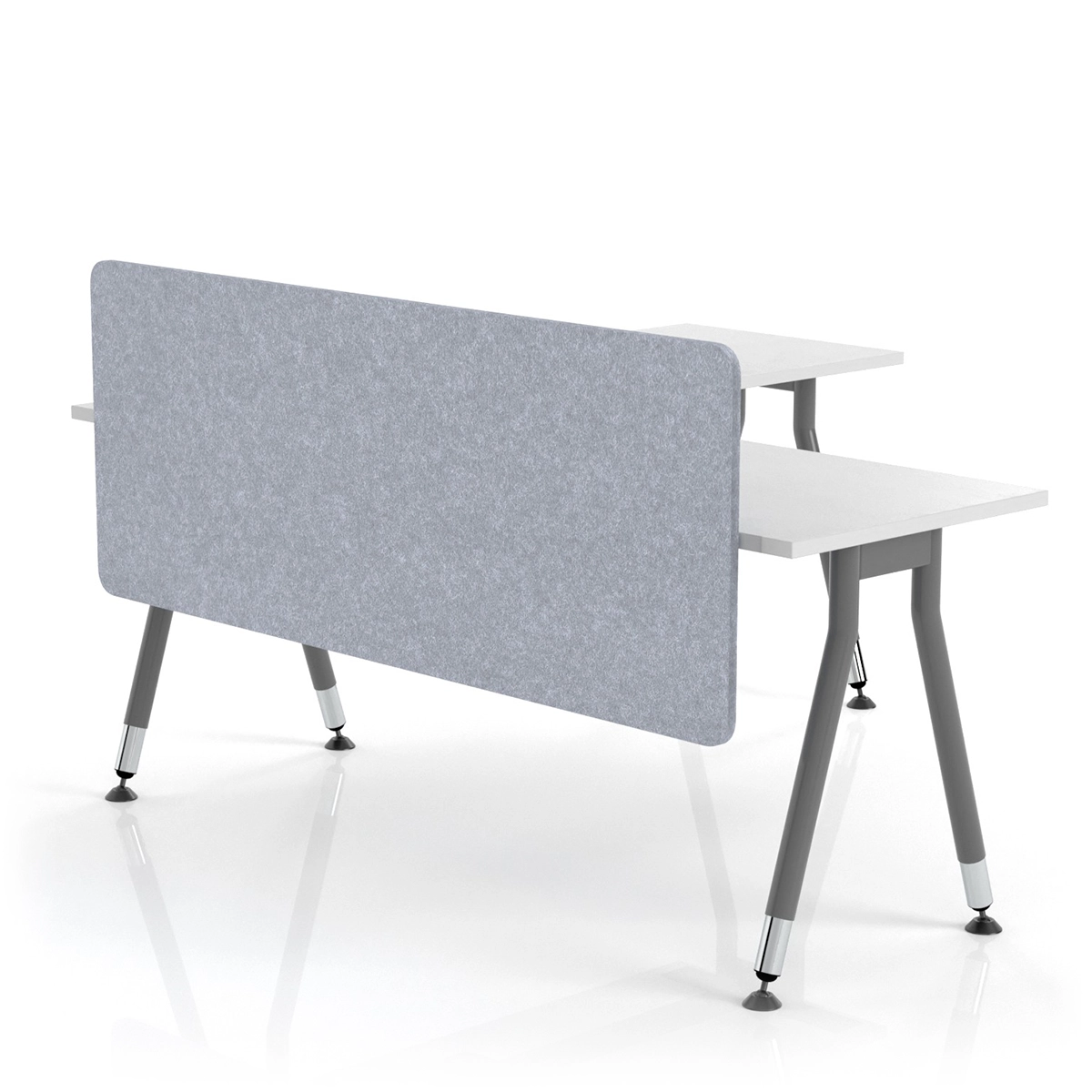 Add privacy to tables and desking with a Privi Desk Hung Screen. Designed to suit worksurfaces 25mm or 33mm thick, screens are side mounted and hang above and below. This position allows screens to be used as both modesty panels and privacy screens. Screens are lightweight and semi-rigid, providing excellent sound absorbing properties. Due to its light weight design, Privi is ideal for height adjustable desks and workstations. Screens are made from safe, non-toxic, non-allergenic and non-irritant material. Screens are discreetly mounted to worksurfaces using clamping brackets. Brackets are available in white or black. Choose from our 3 standard sizes or contact us for custom options. Designed with solid colour throughout, screens can be cut to a variety of sizes to best suit your needs.