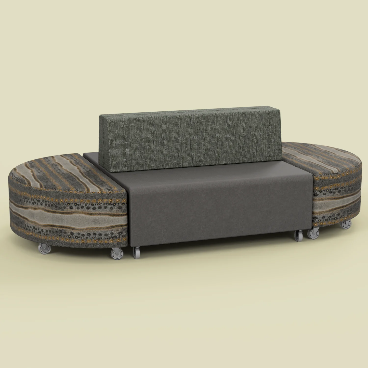 The Quad Half Round Ottoman is a soft and spacious semi-circle ottoman for library, breakout and study rooms, made in Melbourne with Indigenous upholstery. Thanks to it’s dynamic design, Quad Half Round Ottomans create spacious seating individually and work collaboratively with other members of the Quad Range. All Quad products also come with a 10 year structural warranty. Elevate your set-up by pairing with Quad Banq lounges, or get added value with a Quad Track Package.