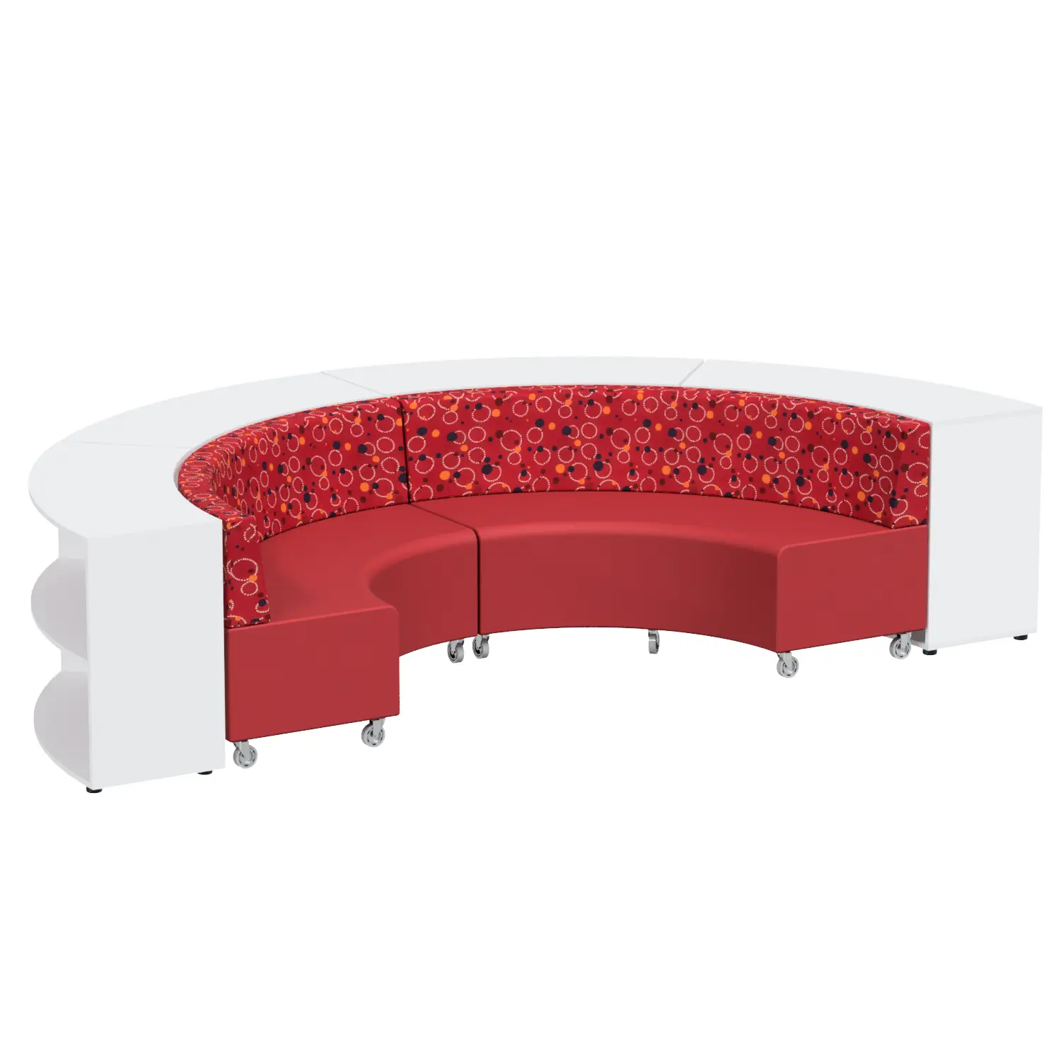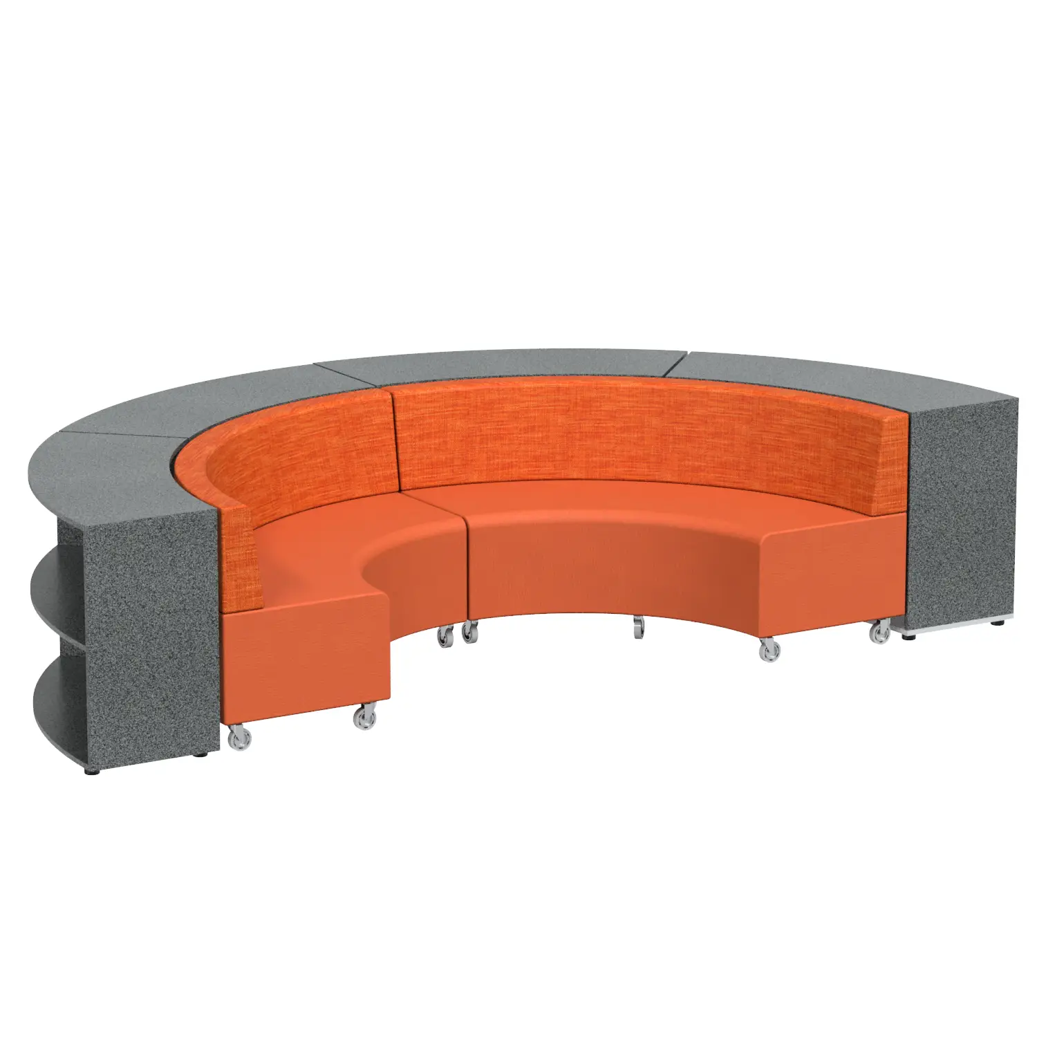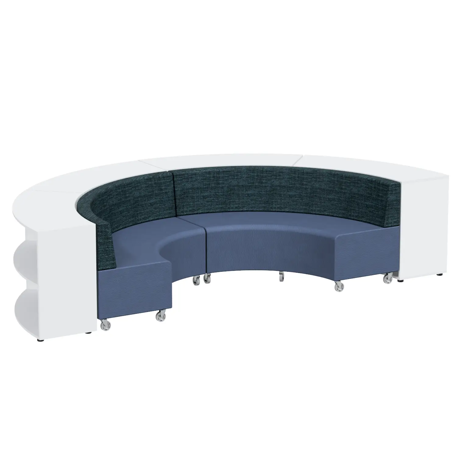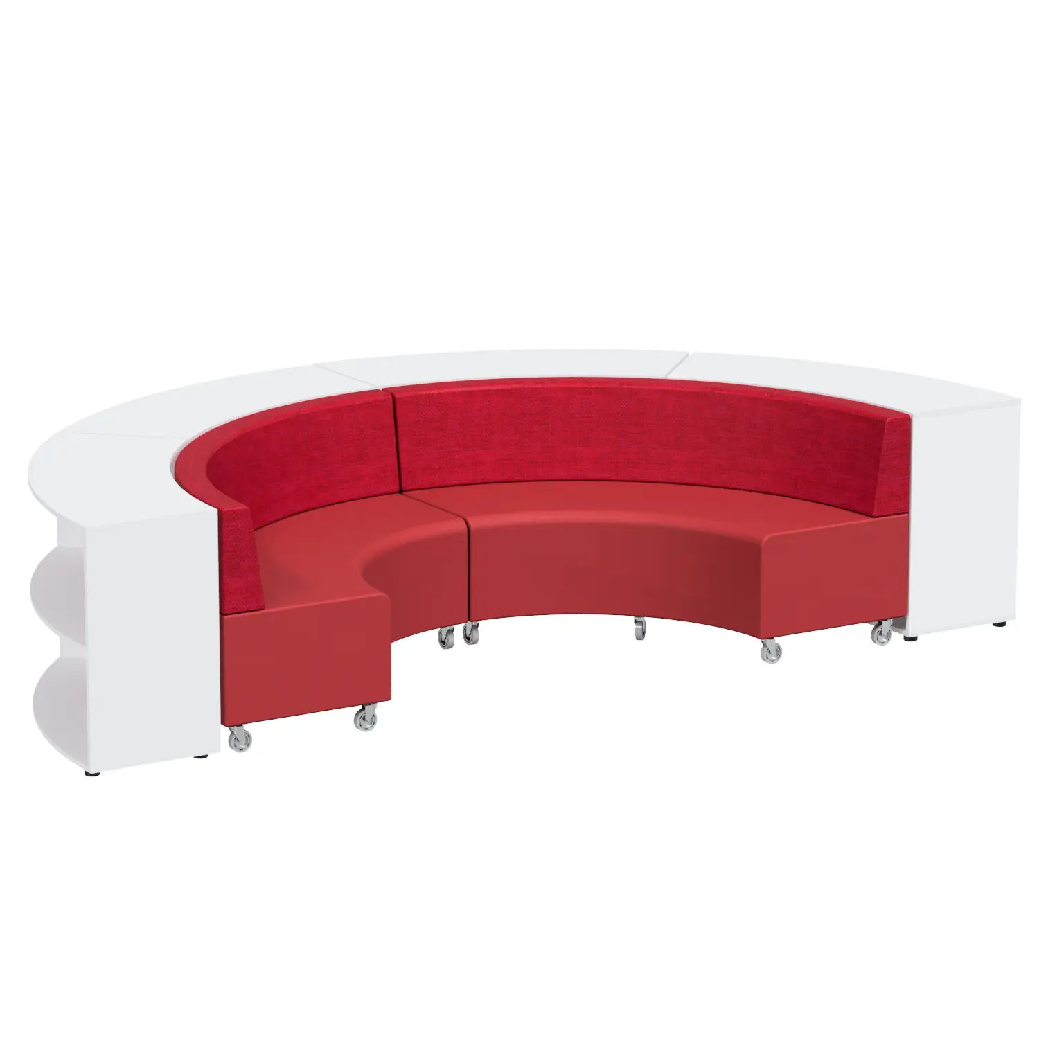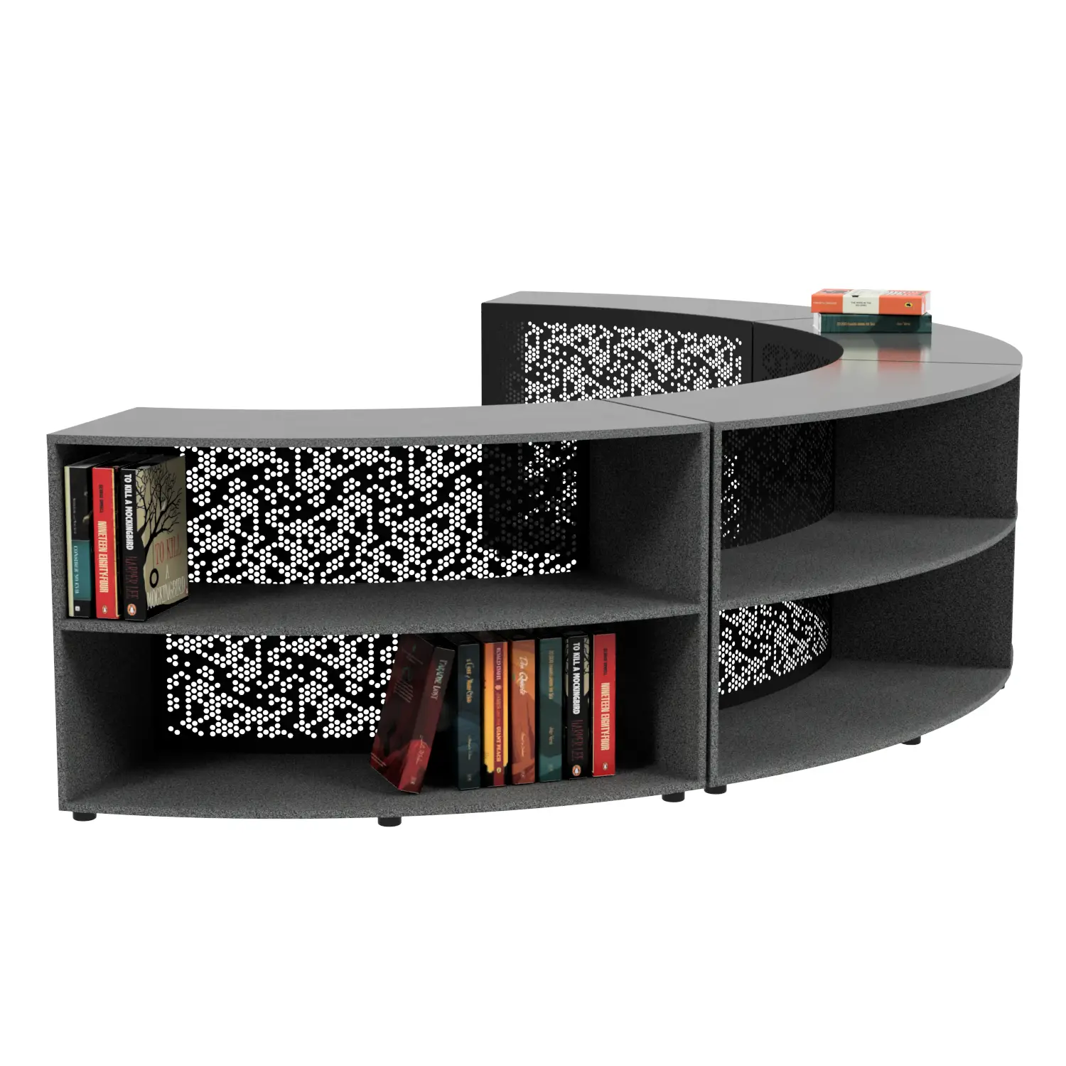 The Quad Library is a modular, concave lounge and bookshelf combo for library and breakout areas, made in Melbourne with commercial vinyl & fabric. Featuring an all-in-one lounge and bookshelf combo, the Quad library creates a compact reading and storage space for contemporary library spaces. Due to its creative, modular design, Quad products can be enjoyed individually or collectively. In addition, Quad products also come with a 10 year structural warranty. Complete your set-up with a Verse Round Table or add more seating with Quad Lounges.