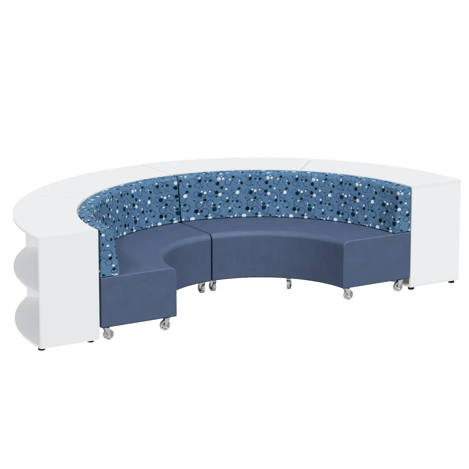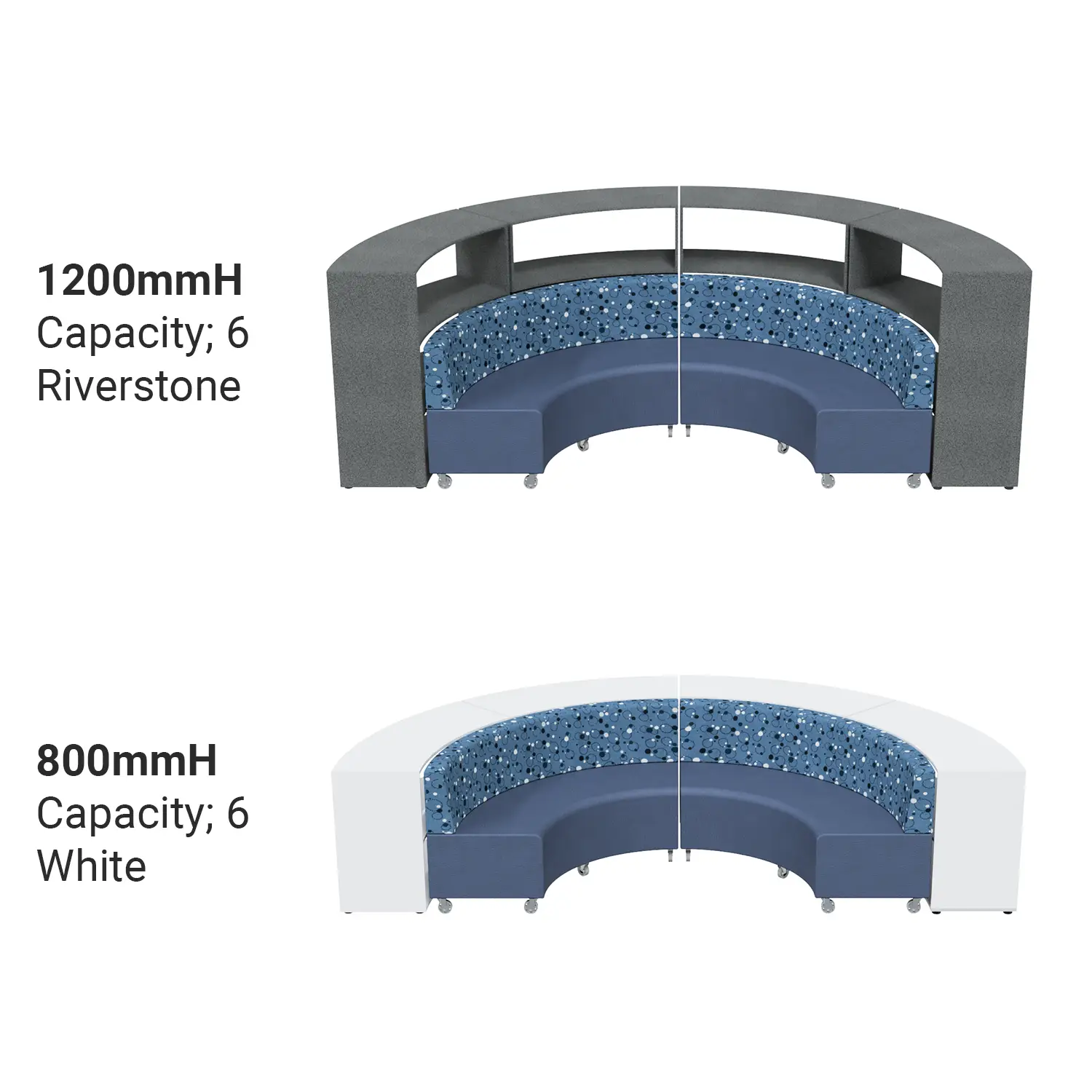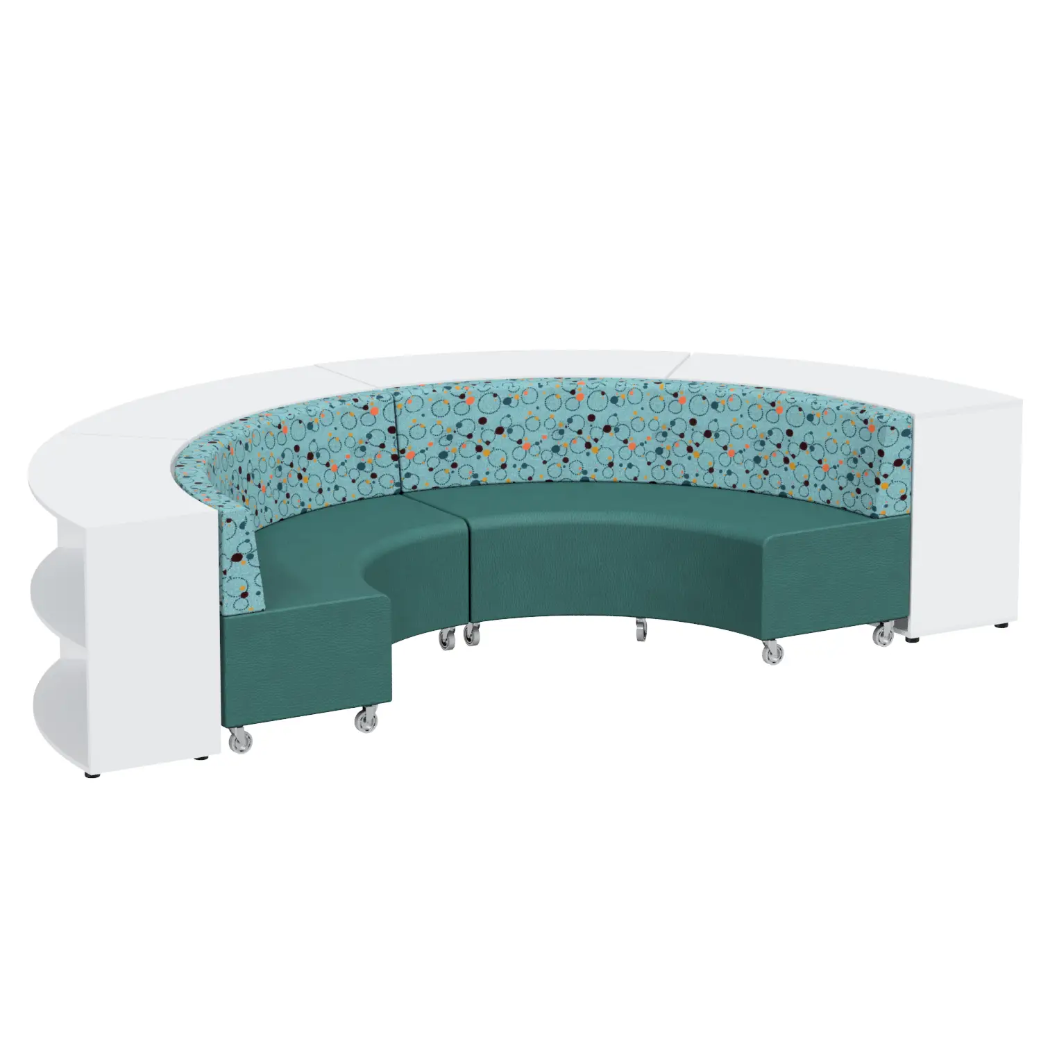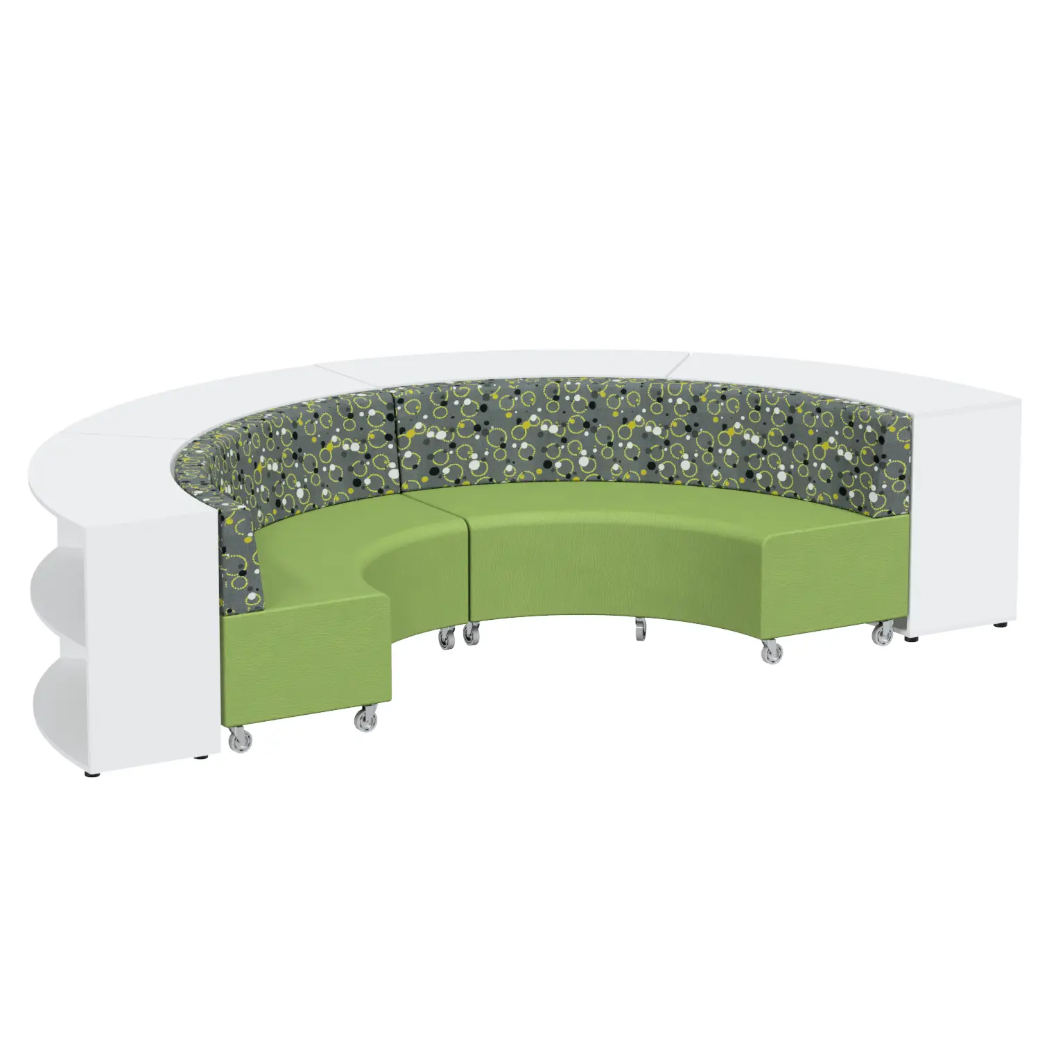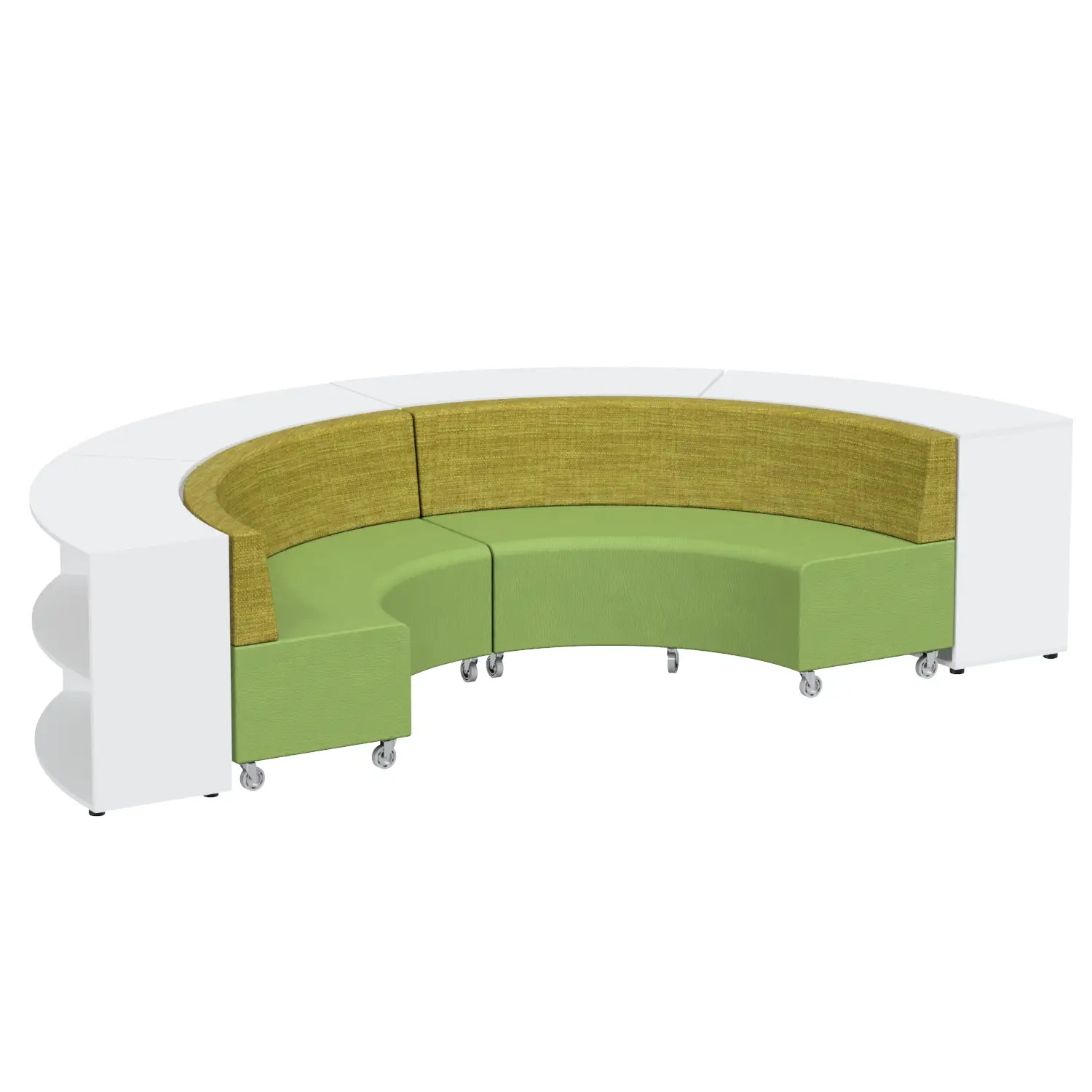The Quad Library is a modular, concave lounge and bookshelf combo for library and breakout areas, made in Melbourne with commercial vinyl & fabric. Featuring an all-in-one lounge and bookshelf combo, the Quad library creates a compact reading and storage space for contemporary library spaces. Due to its creative, modular design, Quad products can be enjoyed individually or collectively. In addition, Quad products also come with a 10 year structural warranty. Complete your set-up with a Verse Round Table or add more seating with Quad Lounges.