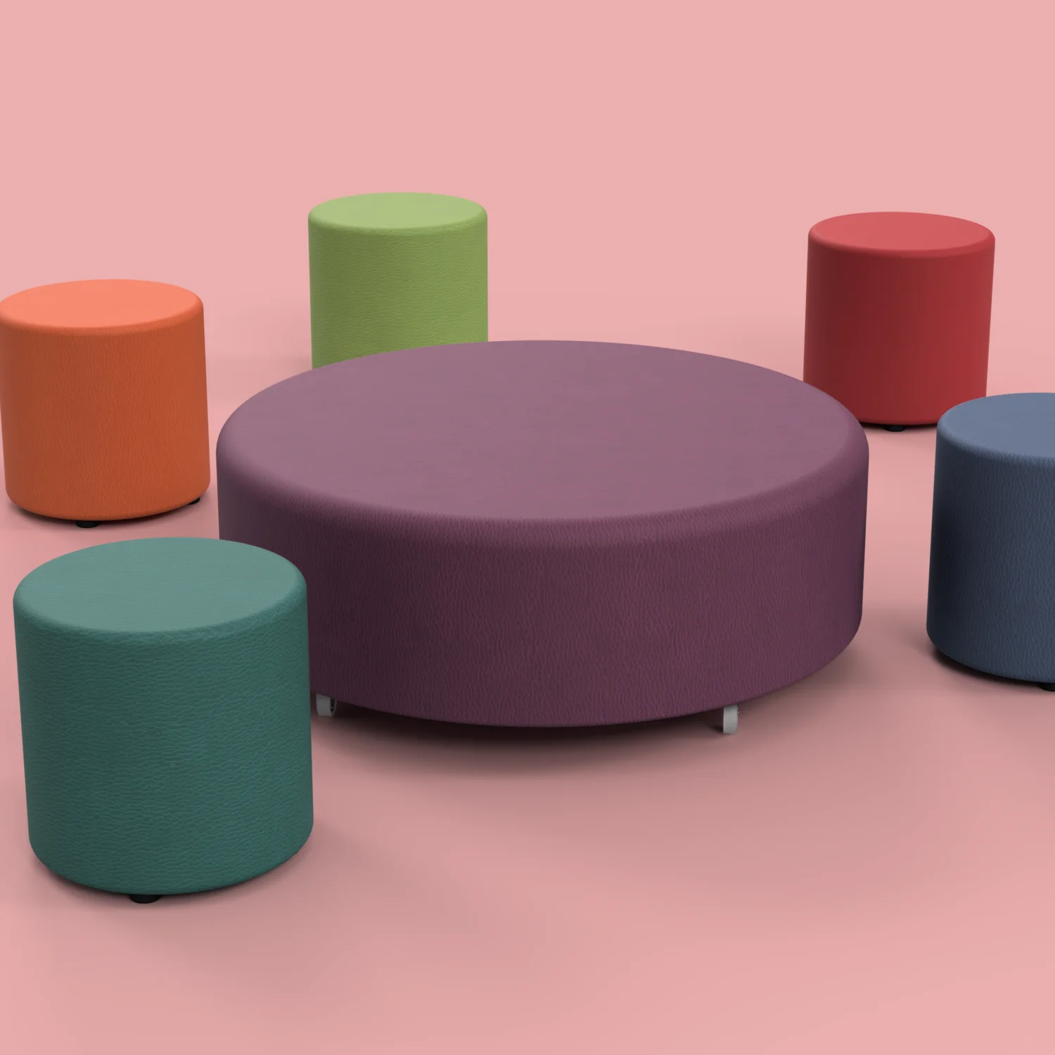 The Quad Pebble Package makes a great addition to library spaces, classrooms and reception areas. Packages are available in 2 sizes to best suit your needs. The 1200DIA package comes with 1 x Quad Round Ottoman (1200DIA) and 5 x Ottomax Rounds. The 900DIA package comes with 1 x Quad Round Ottman (900DIA) and 4 x Ottomax Rounds. Ottomans feature comfortable foam padding and are available in both vinyl and fabric upholstery. Choose one colour, or select ‘Custom Colour’ to mix and match. The Quad Round Ottoman includes lockable castors for easy mobility, while Ottomax Rounds have plastic feet for added protection.