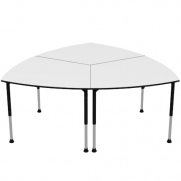 Enjoy flexible layout options with the Shield Set Whiteboard. Whiteboard tops allow students to easily share ideas, perfect for collaborative projects and group activities. The Shield Set consist of 3 identical Shield Segments. Each segment accommodates 3 students. Segments can be used in groups of 3 or individually. Tables feature a fully welded frame in black powder coat as standard. Height adjustable Adapta Legs and Ezy-Height Frames are also available to best suit your needs. Adapta Legs are adjustable from 460mm to 710mmH, making them a popular option for students of all ages. Revolution Legs are adjustable from 500 to 764mmH. Ezy-Height Frames are adjustable from 535 to 735mmH. The Shield Set continues to be a popular choice for classrooms, study areas and library spaces. Shield tables also come with a 10 year warranty for added value. For colour laminate options, shop Shield Set.