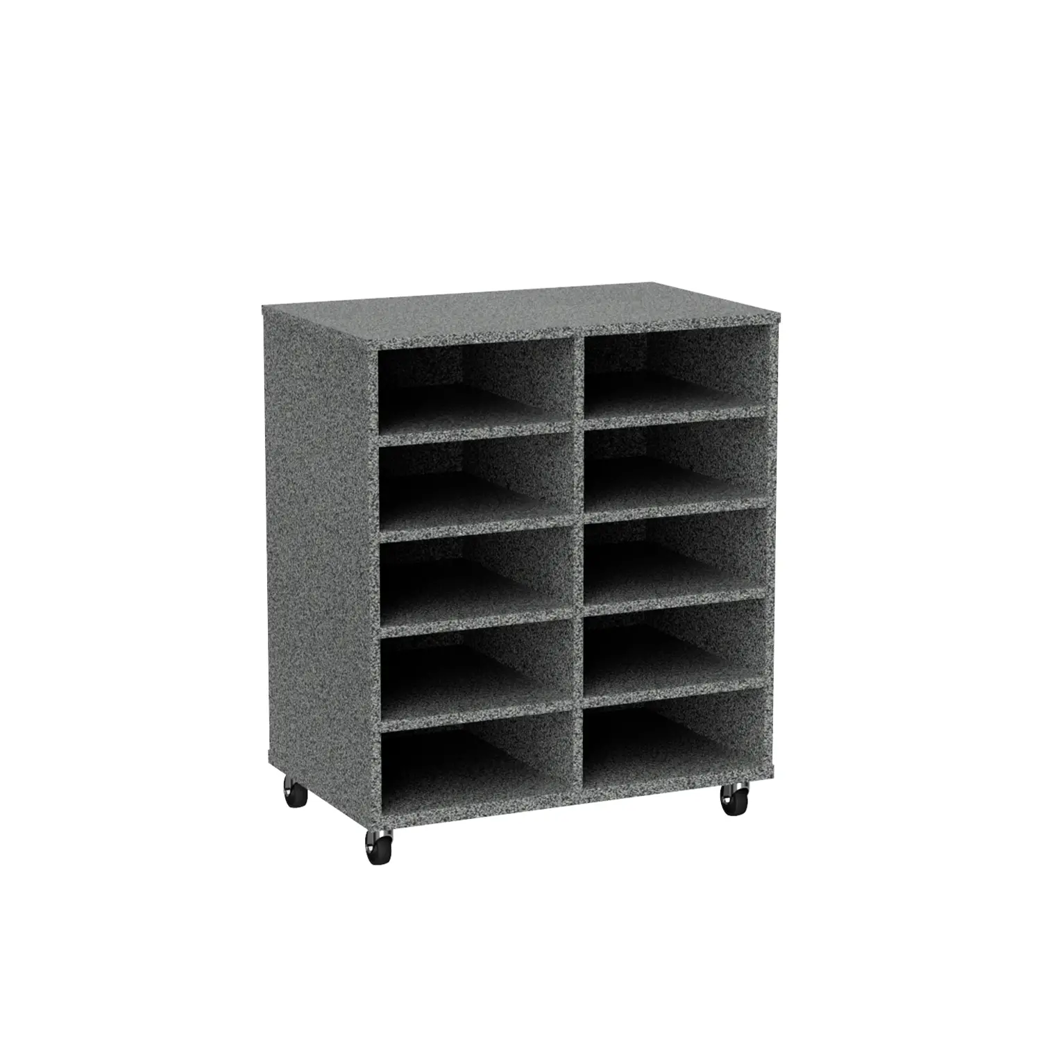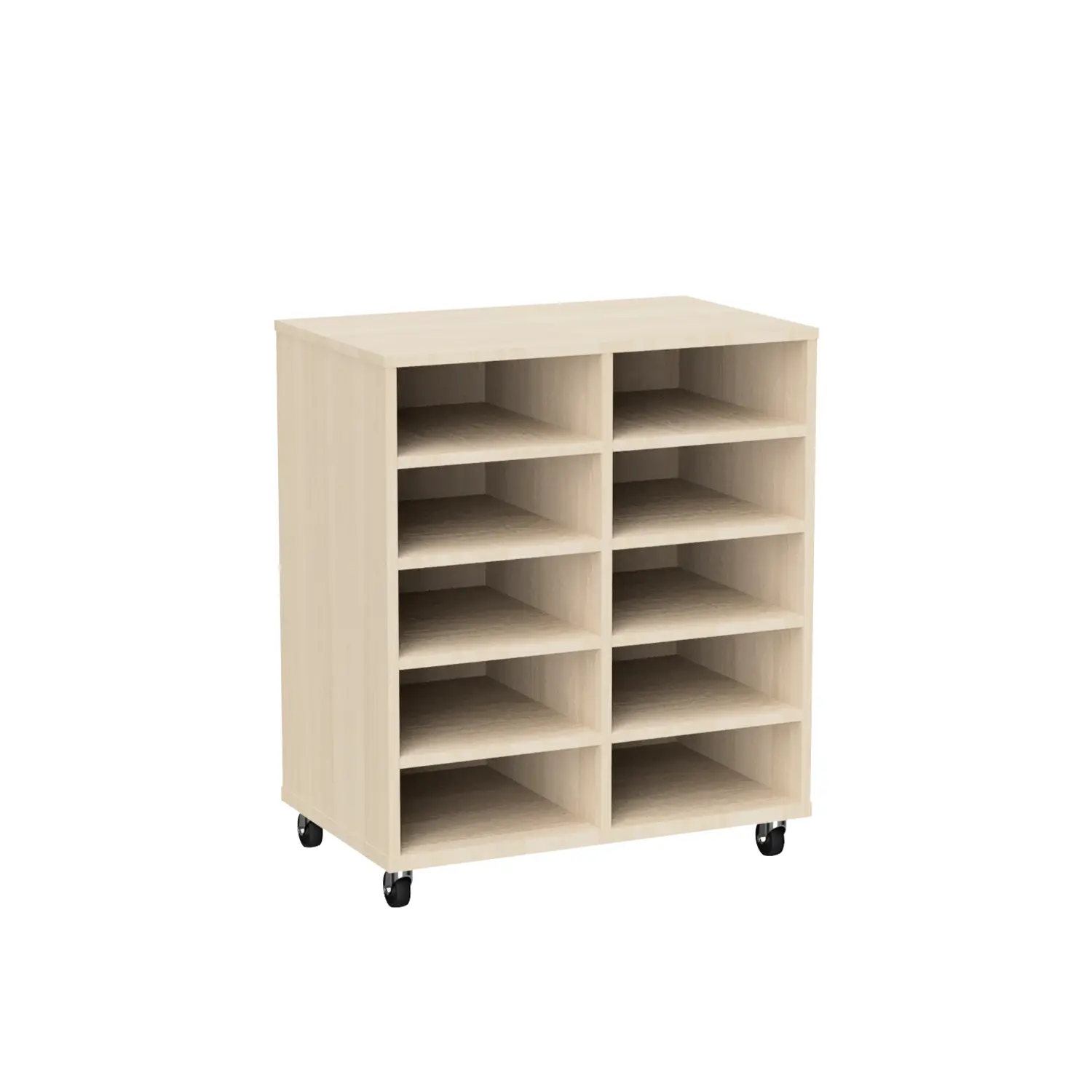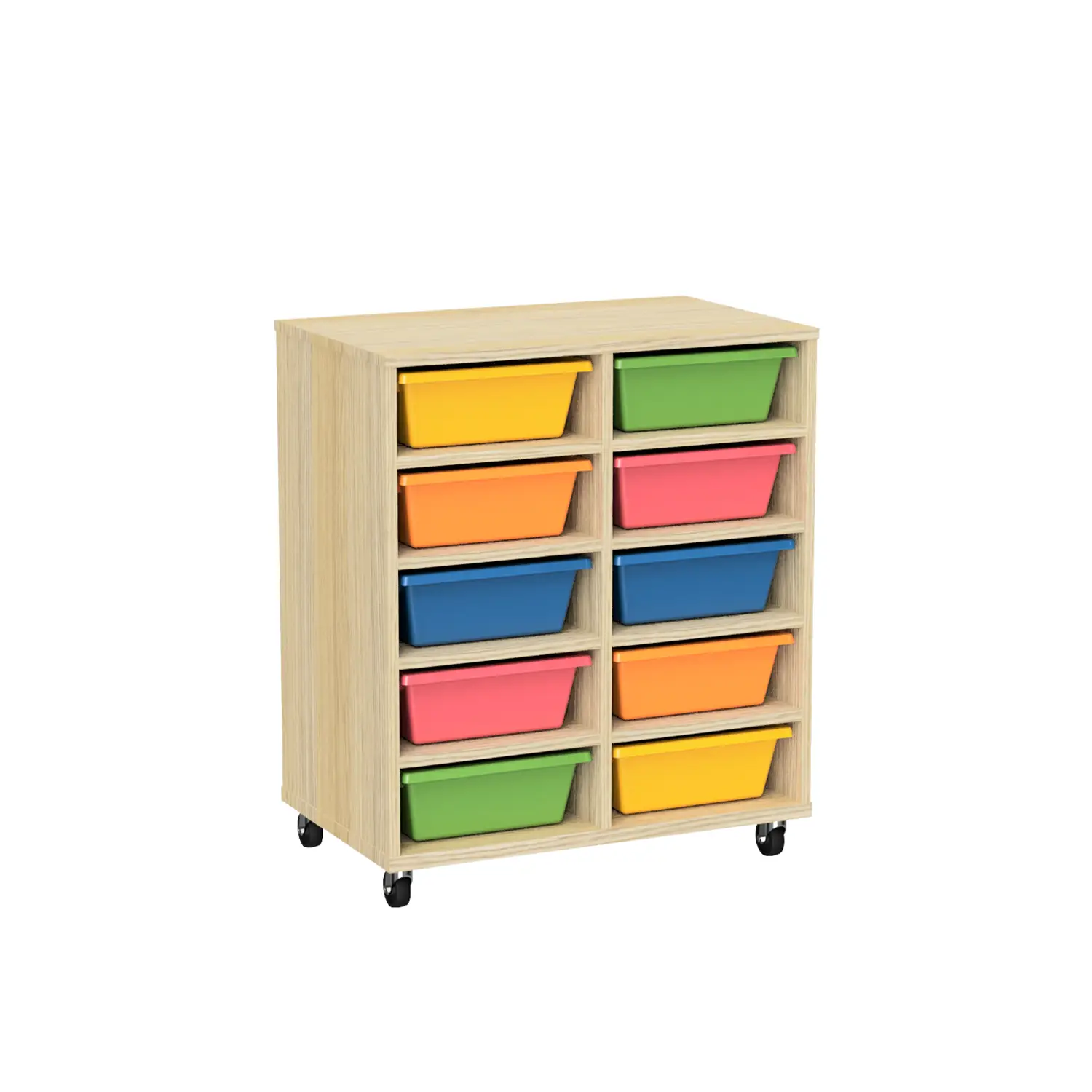 Keep classrooms organised with the Tote Trolley 10. Units feature 10 tote box compartments for easy storage. Featuring heavy duty castors, units are easy to move on both carpet and floorboards. Made from MDF board, trolleys are suitable for high use learning environments. Tote units are currently available in Riverstone, Canadian Maple or Natural Oak. SFX Tote Boxes are optional for added storage and functionality. Tote boxes provide quick access to high use items such as text books, tablets and writing utensils. As a result, students can work more effectively, saving time and space. See our Tote Trolley 15 for more storage options.