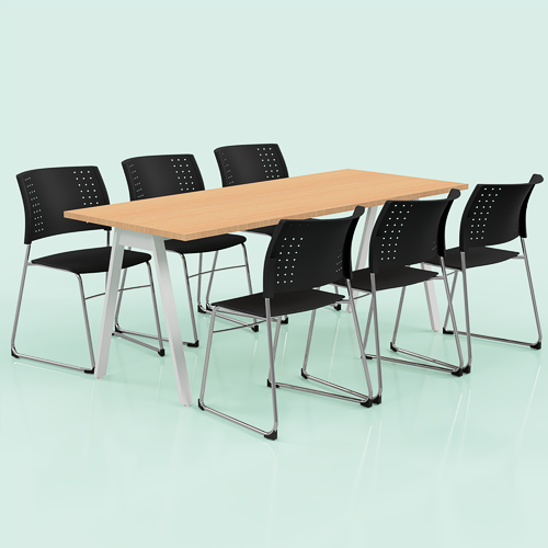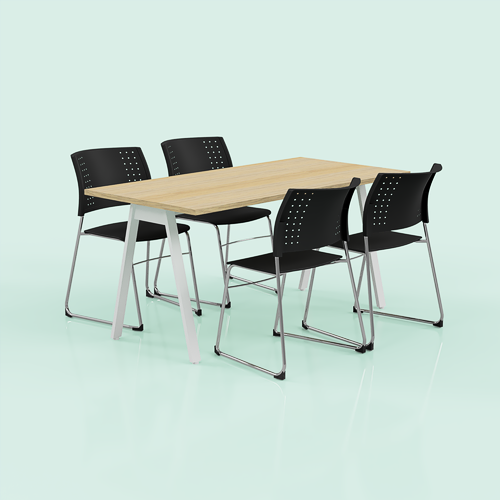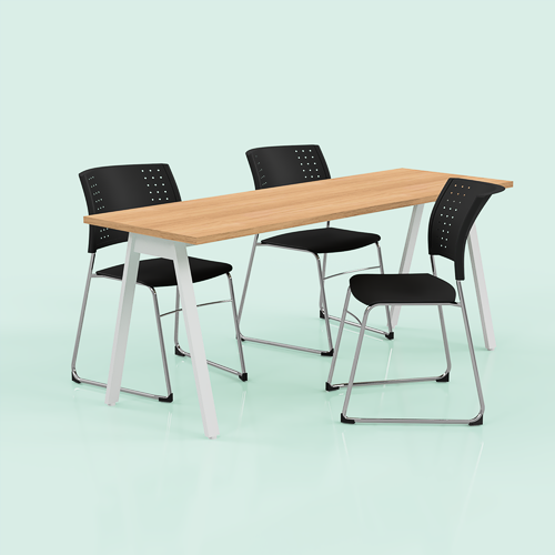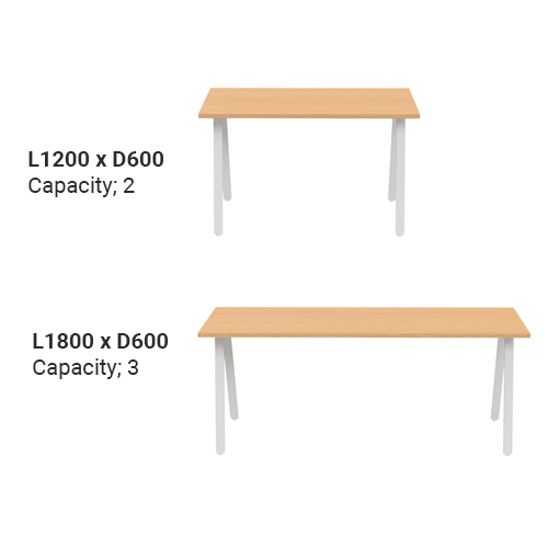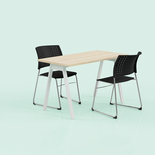 Create professional looking work spaces with the Vee Table. Table tops are 25mm thick and feature 2mm protective ABS edge banding. Frames have a unique ‘A-frame’, providing a modern detail on an otherwise classic design. Frames are available with Black or White powder coat options. Table tops are available in 5 standard colours to best suit your needs. Vee Tables come with a 7 year warranty for added value. Complete your next fit out by complimenting with Aero Chairs for a sleek, contemporary look.